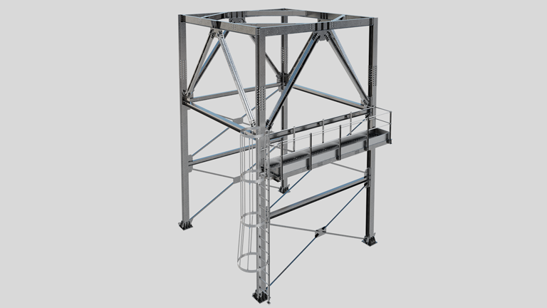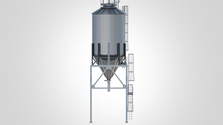 - Elementos de seguridad, como una plataforma de inspección lateral y una plataforma de acceso al silo.